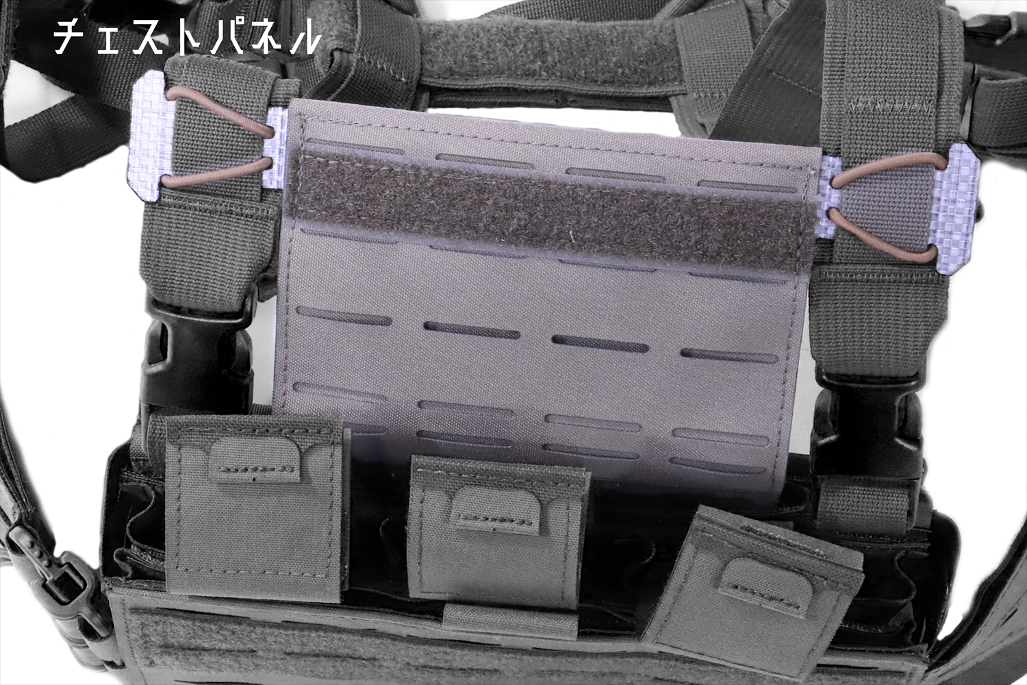 プレートキャリアのプラカードとしても使用でき、工夫次第で貸与品のボディアーマーへも容易に接続できます。→アーマーの有無にかかわらず、同一構成の腰回りを運用できます。